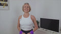 Jolanta with wrist weights on yoga mat